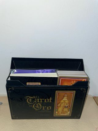 Vendo cartas de tarot,la caja incluye un libro de 48 páginas y la baraja de cartas del tarot todas como nuevas, 78 cartas de tarot de 7 × 12 cm.