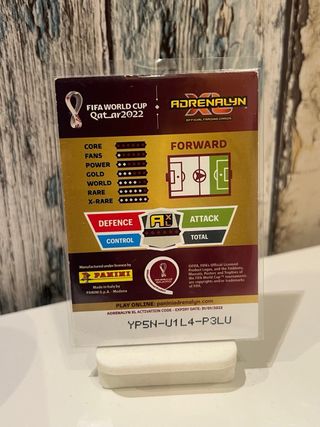 Carta de Lionel Messi, edición limitada Premium Gold, del Mundial de Qatar 2022. Adrenalyne XL Buen estado - Jugador: Lionel Messi - Edición: Premium Gold - Colección: FIFA World Cup Qatar 2022 - País: Argentina (ARG) - Puntuaciones: 81 (ataque), 93 (técnica), 100 (defensa), 274 (total) - Categoría: LTD (Limited Edition)