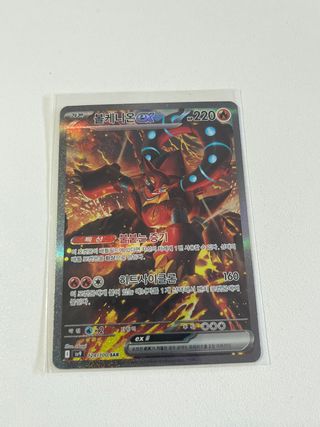 Carta de Pokémon de Volcanion EX, con número 124/100 y rareza SAR. Carta muy cotizada por sus colores y brillos. - Carta 100% original. - Full Art. - Ilustración de akagi. - Idioma: Coreano