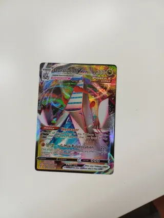 Carta Pokémon de Duraludon VMAX. - Número de carta: 23/203. - Ataque especial: G-Max Pulverization. - Habilidad: Skyscraper.
