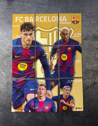 Mosaico del FC BARCELONA compuesto por NUEVE Cartas Editadas en 2026 por DAKA. Corresponden a la coleccion DAKA AUDIENCE 25-26. NUEVAS Del Sobre a La Funda. Pago y Envio a través de Wallapop, Paypal, Transferencia o Bizum. Gastos de envío 2€ (Ordinario), 6,50€ (Paq Ligero Certificado Hasta 250g) o por Wallapop. MAS CARTAS FC BARCELONA FUTBOL SOCCER PANINI TOPPS DAKA EN MI PERFIL. Hago Lotes a Medida. Elige Las Que Te Interesen y Subo Un Anuncio Personalizado Con Las Que Hayas Elegido - Diseño con escudo del FC Barcelona. - Mosaico compuesto por varias piezas.
