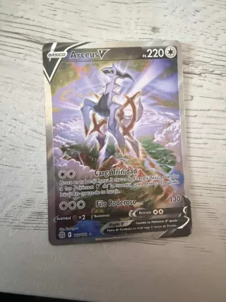 Carta coleccionable de Pokémon, Edición especial. - Modelo: Charizard V - Color: Dorado - Ataque: Explosión de Calor - Energía: 220
