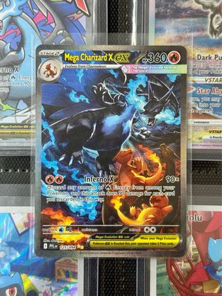 Carta Pokémon Charizard VMAX, edición especial Rainbow Rare. - Carta Pokémon Charizard VMAX. - HP: 330. - Ataques: Claw Slash y G-Max Wildfire. - Ilustración de Musaky CG Works. - Código: 074/073. Un poco dañado