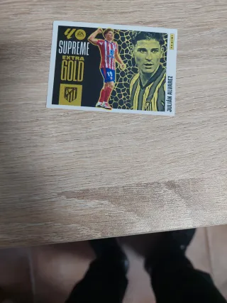Colección de cromos de fútbol de la Liga. - Cromos de la colección Super Kids. - Incluye cromos Extra Gold y Supreme Gold. - Jugadores como Julián Álvarez y Nico Williams.