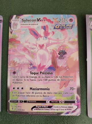 SE ESCUCHAN OFERTAS!!! Carta Pokémon Sylveon VMAX, número 212/203 de la colección Golpe Fluido. La carta está en muy buen estado. + 2 cartas de regalo + fundas y sobre.