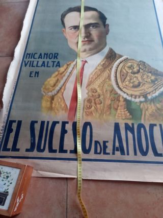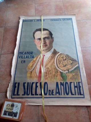 Preciosa pieza de coleccionista. Cartel de cine antiguo del torero Nicanor Villalta en "El Suceso de Anoche". - Mide aproximadamente 120 cm de alto x 82 cm. Ancho. - Ideal para decoración vintage o coleccionistas de carteles taurinos...decoracion museo..cine..cafeteria...toreros..carteleria