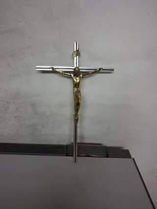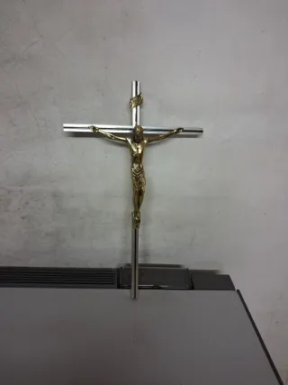 Crucifijo de pared dorado y plateado