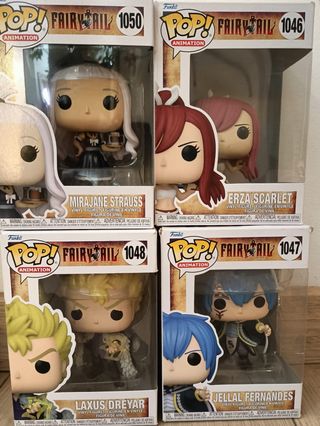 Lote de 4 figuras Funko Pop! de la serie Fairy Tail, todas con su caja original. - Mirajane Strauss (1050) - Erza Scarlet (1046) - Laxus Dreyar (1048) - Jellal Fernandes (1047) Se pueden comprar por separado( 12€ unidad)