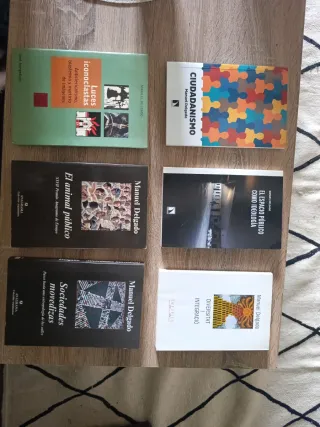 Lote de seis libros de antropología del autor Manuel Delgado. Se pueden comprar juntos o separados. - Luces iconoclastas (30€) - Ciudadanismo (10€) - El espacio público como ideología (10€) - El animal público (20€) - Sociedades movedizas (15€) - Diversitat i integracio (10€)