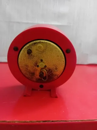 Reloj despertador de estilo vintage con un llamativo diseño. - Color rojo. - Marco dorado. - Esfera blanca con números negros.