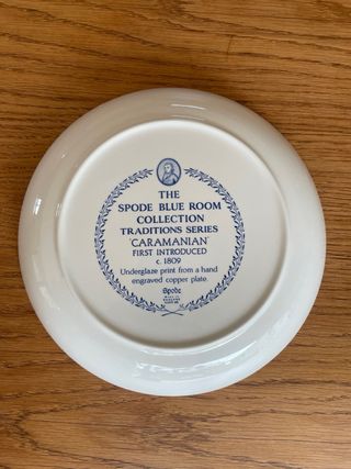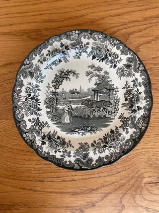 Plato decorativo de la colección Archive de Spode, perteneciente a la serie Georgiana. Presenta un diseño clásico con motivos florales y una escena campestre. - Diseño: Serie Georgiana. - Colección: Archive. - Marca: Spode.