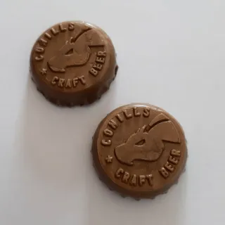 2 chapas de cerveza de la marca Conill's Craft Beer. Edición limitada lacrada con sello ddel logo de la marca de su cerveza negra Calanans. - Diseño con logo de la marca. - Tapones corona 26mm.