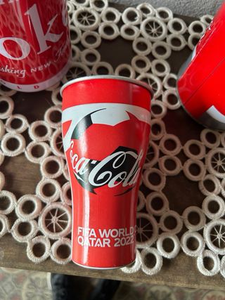 Lata conmemorativa de Coca Cola para el Mundial FIFA Qatar 2022. - Diseño rojo con logo de Coca Cola. - Incluye el logo de FIFA World Cup Qatar 2022. - Es un artículo de colección.