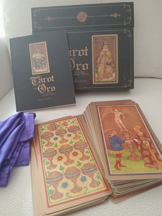 Baraja de cartas del Tarot El Tarot de Oro, basada en la Visconti Sforza. - Incluye libro explicativo. - Diseño clásico y detallado.