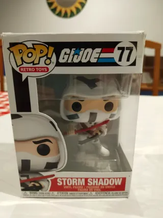 Figura Funko Pop de Storm Shadow, número 77 de la colección G.I. Joe. - Diseño inspirado en el personaje. - Caja original incluida. Las esquinas de la caja están un poco dañadas y les he puesto celo para que no se dañen más, ver primera foto