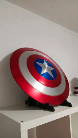 Escudo oficial de Capitán América, fabricado en METAL de alta calidad, con un acabado espectacular y muy fiel al de las películas de Marvel. Es una pieza sólida, pesada y resistente, ideal tanto para coleccionistas como para decoración o cosplay. Incluye soporte para exhibirlo❗ Ideal para estanterías, vitrinas o habitaciones. ✔ Producto oficial Marvel ✔ Material: metal ✔ Excelente estado ✔ Ideal para fans, coleccionistas o regalo épico 💰 Precio: 340 NEGOCIABLE Una pieza premium difícil de encontrar. No es una réplica barata, es de muy buena calidad.