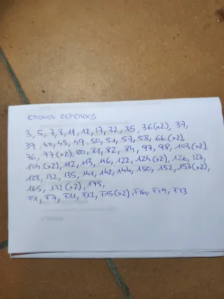 Faltas: 2, 4, 6, 7, 8, 9, 10, 11, 12, 13, 14, 15, 17, 18, 19, 22, 23, 24, 25, 26, 27, 29, 36, 39, 42, 43, 44, 45, 46, 48, 49, 51, 53, 58, 62, 69, 75, 77, 79, 81, 84, 87, 88, 89, 90, 93, 94, 95, 96, 97, 98, 100, 101, 102, 103, 104, 105, 106, 109, 110, 111, 112, 113, 114, 115, 117, 118, 122, 124, 129, 130, 132, 135, 136, 138, 140, 142, 143, 144, 145, 146, 147, 148, 149, 150, 151, 156, 160, 161, 162, 166, 173, 177, 179, 187, 188, 189, 190, 191, 192, 194, 195, 197, 202, 209 Repetidos: 28, 56, 121