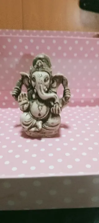 Figura decorativa de Ganesha. - Diseño detallado. - Color crema y detalles oscuros.