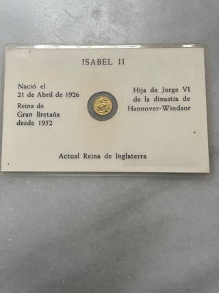 Curio conmemorativo de Isabel II. - Incluye una moneda. - Imagen de la Reina Isabel II. - Imagen de la corona.