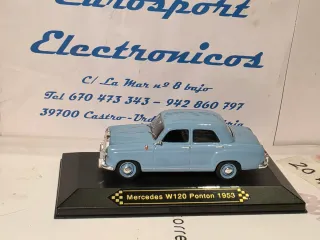 Réplica a escala 1/43 del Mercedes W120 Pontón de 1953. Este modelo presenta un acabado en color azul claro. - Modelo: Mercedes W120 Pontón - Año: 1953 - Escala: 1/43 - Color: Azul claro - Con la urna nueva. - Con la peana personaliza por nosotros. - Impecable. - Es el de las fotos. Así que fíjate bien.