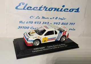 Réplica del Ford RS200 de Carlos Sainz-Luis Moya, campeón del Campeonato Nacional de Rallies de Tierra en 1987. Escala 1/43. - Modelo: Ford RS200. - Pilotos: Carlos Sainz-Luis Moya. - Año: 1987. - Escala: 1/43. - Con la urna nueva. - En su peana original. - Es el de las fotos. Así que fíjate bien