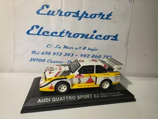 Réplica detallada del Audi Quattro Sport E2 que compitió en el Rallye Sanremo de 1985. - Modelo a escala 1/43. - Pilotos W. Rohrl - C. Geistdorfer. - Con la urna nueva. -En su peana original. -Esta impecable. - Es el de las fotos. Así que fíjate bien.