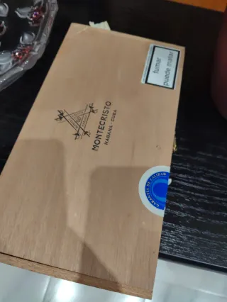 Caja de madera para puros Montecristo. - Marca: Montecristo - Origen: Habana, Cuba - Incluye sello de garantía de calidad.