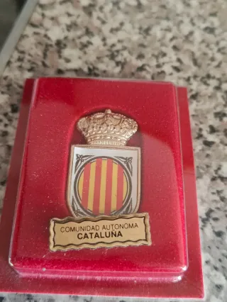 Medalla con el escudo de la Comunidad Autónoma de Cataluña. - Diseño con corona y escudo. - Inscripción Comunidad Autónoma Cataluña en la base.