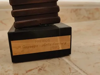 Trofeo conmemorativo del año 1995. - Diseño abstracto con forma de caballo. - Base de mármol negro. - Placa conmemorativa grabada.