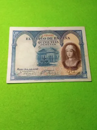 Billete 500 Pesetas 1927. Isabel la católica