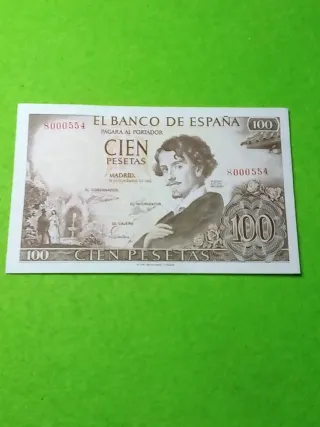 Billete de 100 pesetas del Banco de España. Un billete conmemorativo. - sin Serie 8000554. - Fecha: 19 de Noviembre de 1986. - Diseño con retrato de personaje histórico.