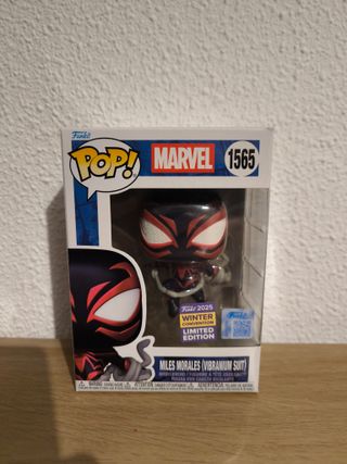 Figura Funko Pop! del personaje Miles Morales con su traje de Vibranium. - Número de modelo: 1565. - Edición limitada de la Winter Convention 2025.