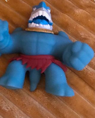 Figura de acción Goo Jit Zu con diseño de tiburón. - Cuerpo azul elástico. - Cabeza de tiburón con dientes blancos. - Cinturón rojo tribal.