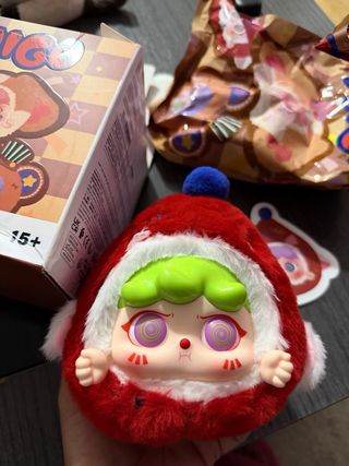 Llavero de peluche con diseño de personaje Migo. estilo labubu - Color rojo. - Detalle de pompón azul en la parte superior. - Material suave al tacto.