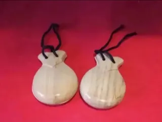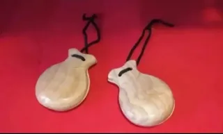 Par de castañuelas de madera auténticas. - Material: Madera. - Color: Natural.