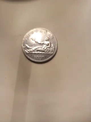 Moneda de 5 pesetas del año 1870. - Ley 900 milésimas. - 40 piezas en 1 Kilo.
