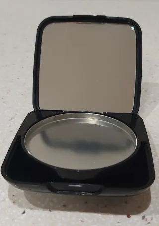 Caja vacía para polvo compacto, ideal para rellenar o para guardar tus productos de maquillaje. - Diseño cuadrado y compacto. - Incluye espejo interior. - Color negro.