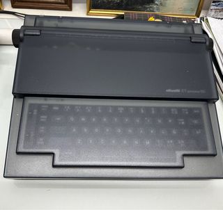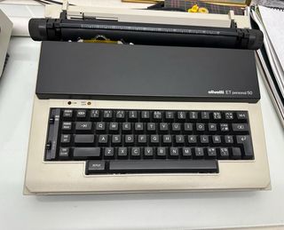 Máquina de escribir portátil Olivetti ET personal 50. - Diseño clásico en color beige y negro. - Teclado QWERTY completo. - Indicadores luminosos para ON y SHIFT LOCK.