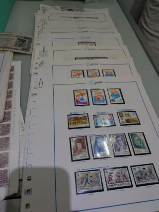 Colección de sellos de España. más un billete de 500 - Incluye varias emisiones. - Sellos de diferentes años y temáticas