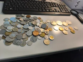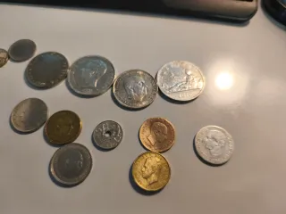 Conjunto de monedas antiguas de diferentes orígenes y épocas. - Variedad de tamaños y diseños. - Piezas metálicas con detalles históricos.