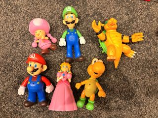 Lote de figuras de personajes del universo Mario Bros. - Incluye a Mario, Luigi, Princesa Peach, Toad y Bowser. - Figura adicional de Yoshi. - Ideal para coleccionistas y fans. Cada figura 1€ Todas juntas: 6€