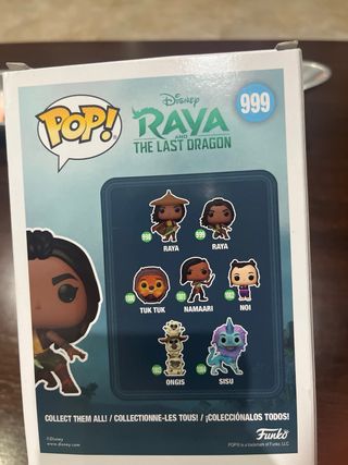 Figura Funko Pop de Raya, personaje de la película Raya y el último dragón. Difícil de encontrar. - Número de coleccionista: 999. - Diseño inspirado en la película de Disney.