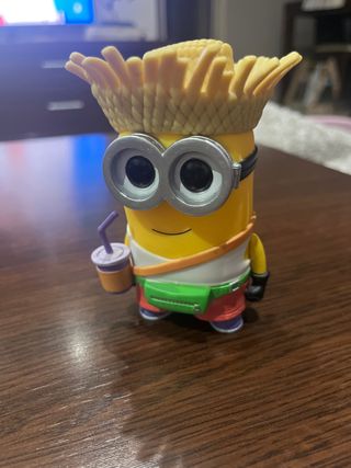 Figura Funko POP de Dave, el Minion turista de Despicable Me 3. SIN CAJA ❌ - Incluye sombrero de paja. - Lleva gafas de Minion. - Viste ropa de verano con riñonera. - Sostiene un vaso con pajita.