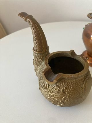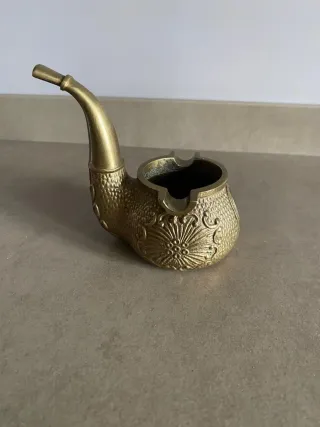 cenicero de bronce con forma de pipa Medidas 10x 8x7 cm y medio kilo de peso - Material: Bronce - Diseño: Texturizado con detalles grabados soporte para cigarrillos
