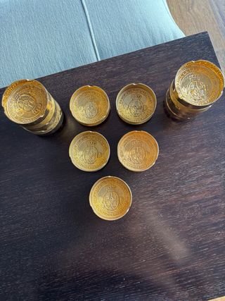 Original cenicero antiguo con base de madera y cuenco de cobre decorado con monedas, mide 12 alto x12 cm diametro, bola del mundo decoracion mide la base 13x16 y 18 cm altura, mapa decorativo hecho a mano en cuero, con un tamaño de 25x25 cm, presenta un diseño detallado de Brasil y países vecinos, con ilustraciones de la fauna y monumentos.precio por unidad 6 euros, entrego en mano o envío, tengo mas cosas a la venta, mirar mi perfil, gracias. - Base de madera tallada. - Cuenco de cobre con borde adornado con monedas. - Diseño único y decorativo.