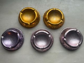 Conjunto de tres ceniceros vintage de aluminio de la marca Fernet Branca. - Diseño redondo. - Acabado metálico. - Inscripción de la marca en relieve