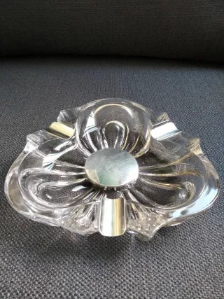 Cenicero de cristal con detalles en plata