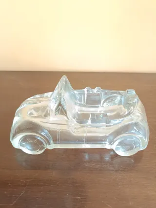 Original cenicero de cristal con forma de coche clásico. - Largo 16 cm . - Diseño vintage. - Material: Cristal transparente. - Es una pieza muy original.