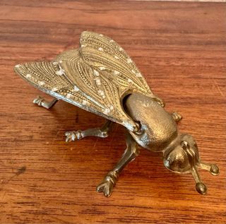 Pequeño cenicero realizado en España en los años 70/80 en metal , representa una mosca que abre su tapadera para apoyar dos cigarros y depositar la ceniza, modelo patentado, cabe destacar su impoluto estado de conservación ya que nunca fue utilizado y siempre estuvo en exposición 6 × 10 cm 13 cm desplegada VISITA MI PERFIL,MAS COSAS DE ESTE ESTILO