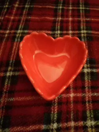 Bonito cenicero con forma de corazón. - Color rojo brillante. - Borde ondulado.